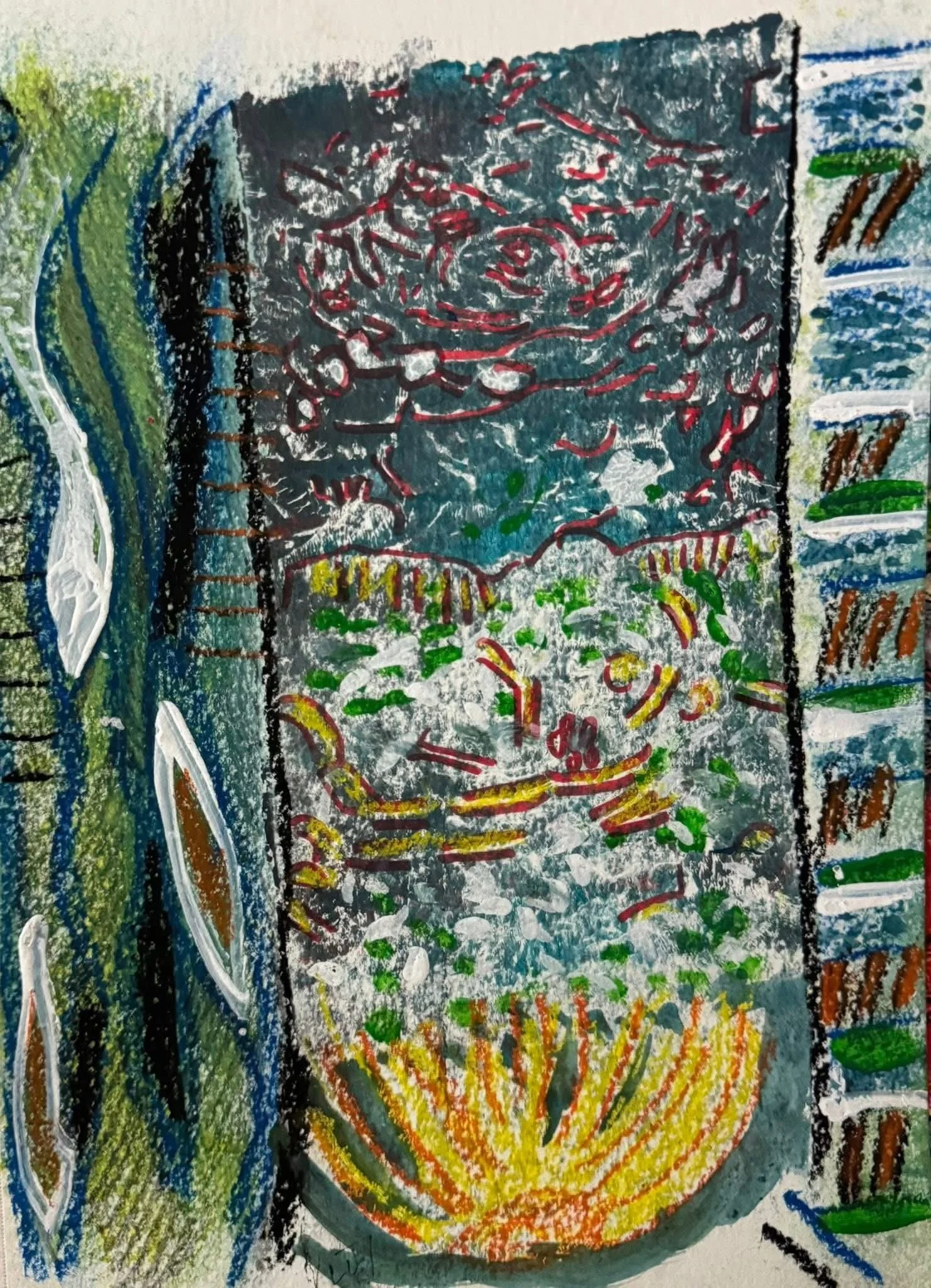 Mixed Media on Paper, 5 in x 7 in, 2023
