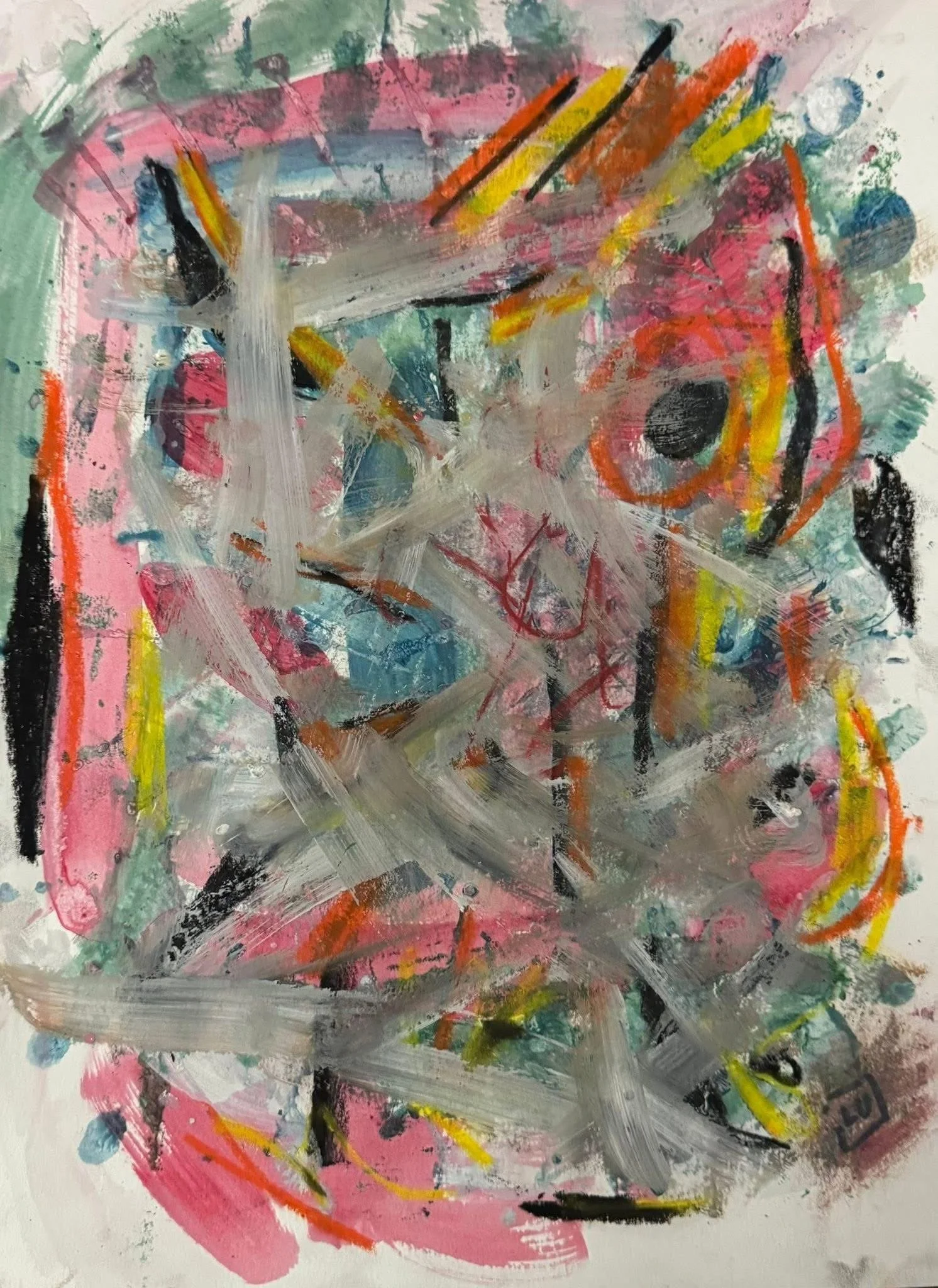 Acrylic Paint, Pencil, Black Ink and Pastel on Paper, 8 in x 12 in, 2025