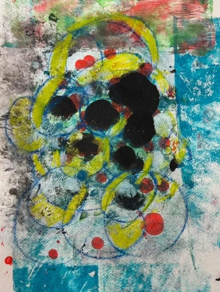Acrylic Paint Gel Print with Charcoal on Paper, 8 in x 12 in, 2025