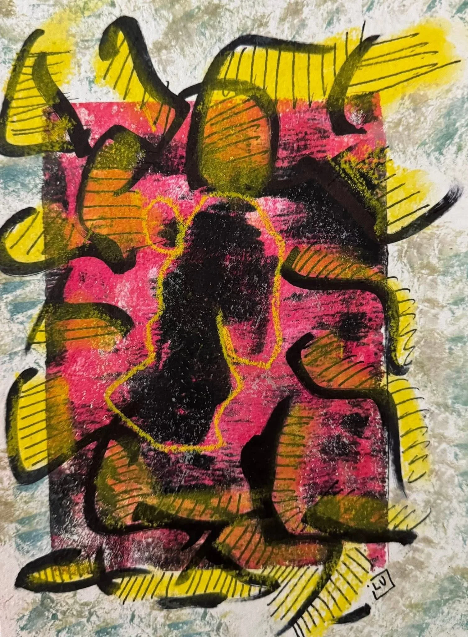 Mixed Media on Paper, 8 in x 10 inches, 2025